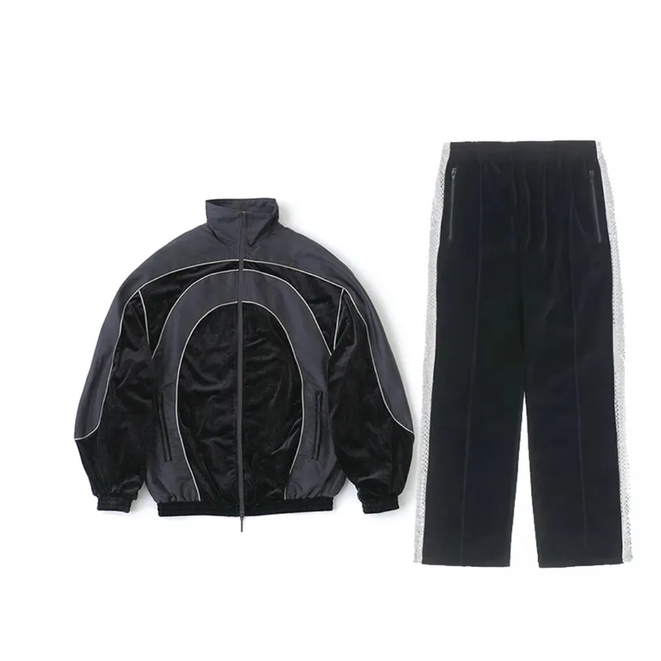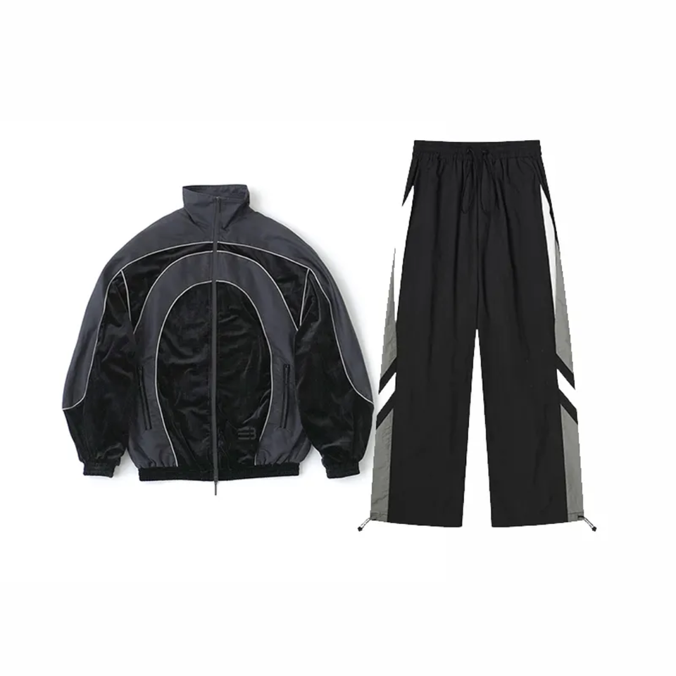 ชุดวอร์มผ้าไนลอนสำหรับผู้ชายชุดวอร์มสองชิ้นสำหรับผู้ชายกางเกงโพลีเอสเตอร์กันลมแบบกำหนดเอง