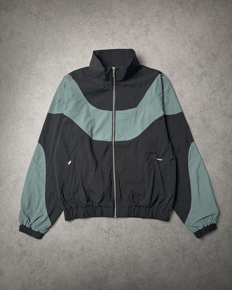 ชุดวอร์มผ้าไนลอนสำหรับผู้ชายชุดกันลมสองชิ้นผ้าโพลีเอสเตอร์แบบรูดซิปสำหรับผู้ชาย