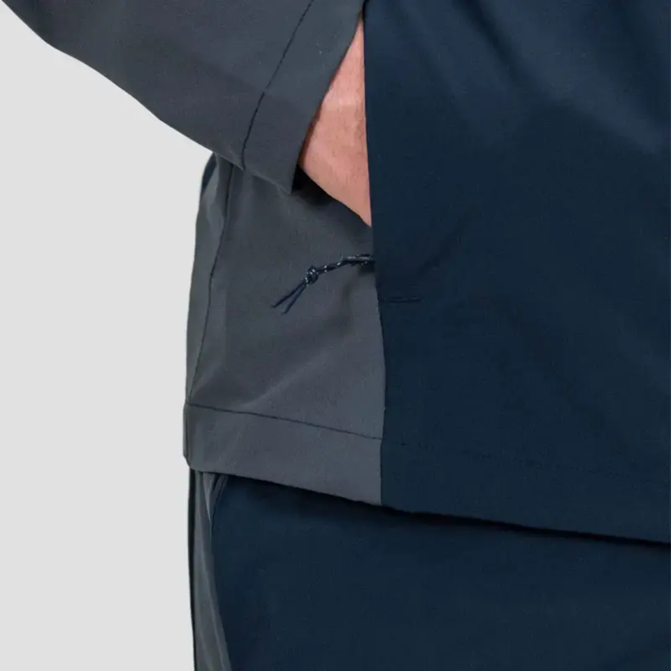 ชุดวอร์มกันลมแบบมีซิปเต็มตัวสำหรับทุกเพศ ผลิตจากไนลอนกันลมและกันน้ำสำหรับผู้ชาย