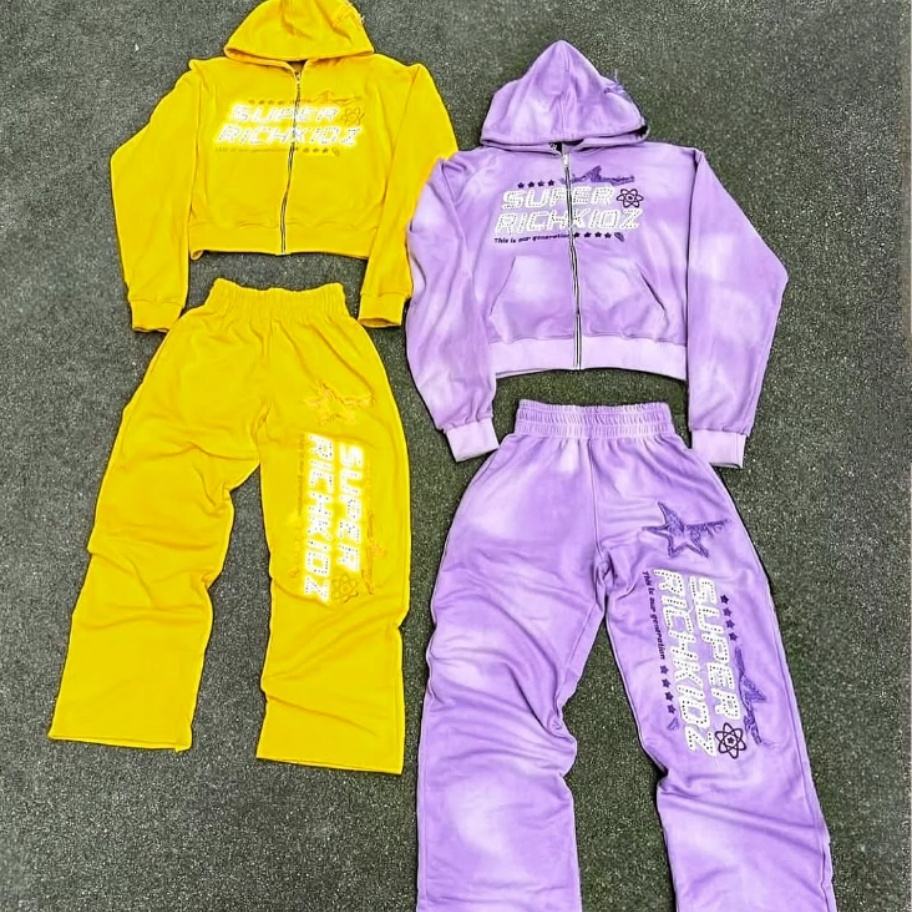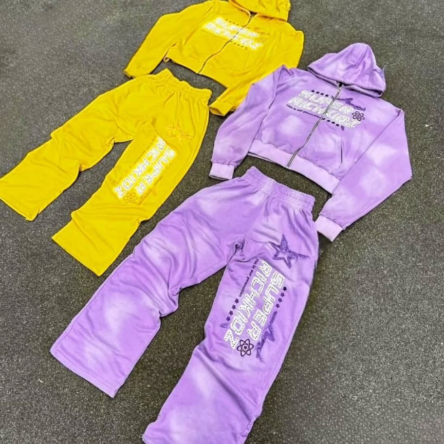 ชุดวอร์มผ้าฝ้ายแท้ 100% สำหรับฤดูหนาว แบบยูนิเซ็กซ์ ตกแต่งด้วยงานปักลาย апплика งานปักลายพิมพ์ งานปะติด ย้อมสีพื้น ขอบดิบ ประดับด้วยคริสตัล