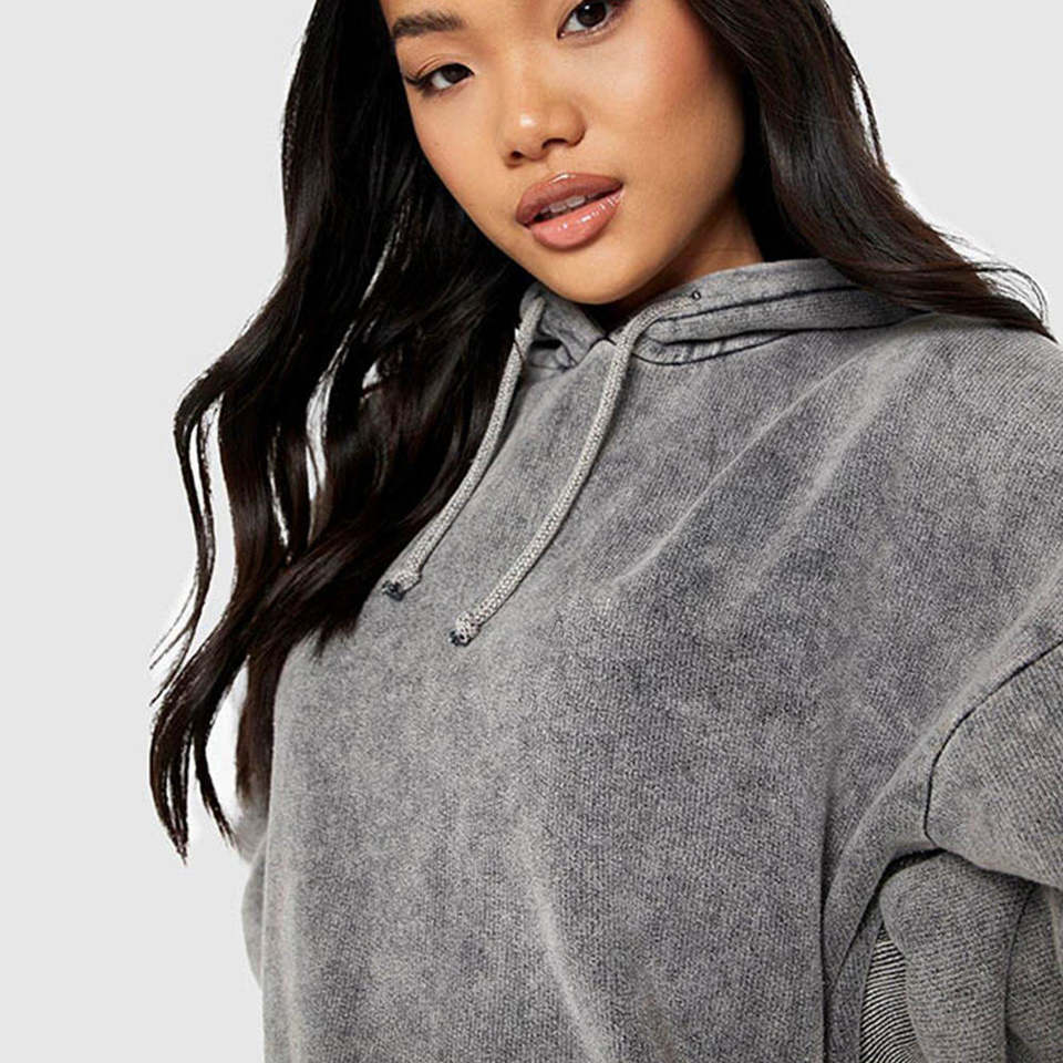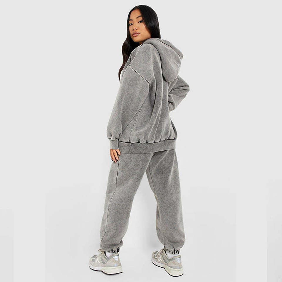 ชุดวอร์มลำลองแบบสวมใส่สบาย ผลิตจากผ้าหนา 400 กรัม รักษ์โลก ตกแต่งด้วยเทคนิค Acid Wash ปักลาย ทรงหลวม กางเกงขายาวทรงบาน เสื้อฮู้ดดี้ ชุดวอร์มทรงแฟลร์