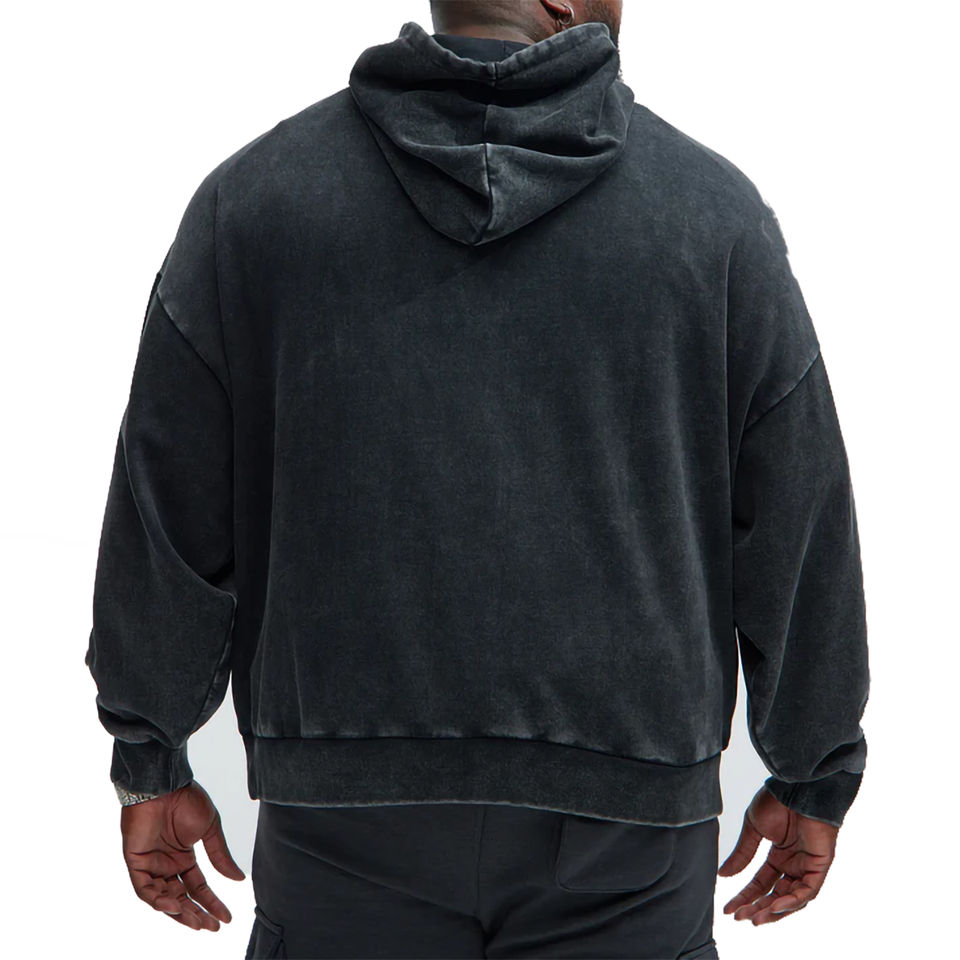 เสื้อมีฮู้ดแบบซิปล้างกรดสำหรับผู้ชายเสื้อมีฮู้ดผ้าฝ้ายฝรั่งเศสเทอร์รี่วินเทจ