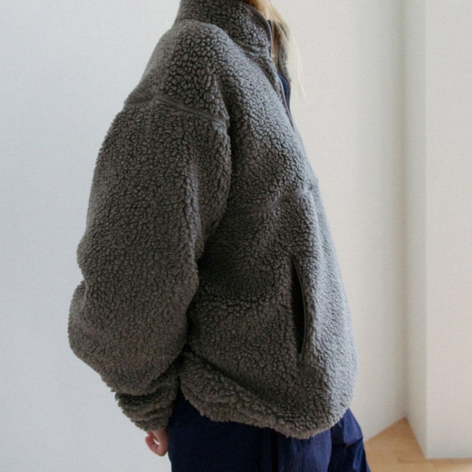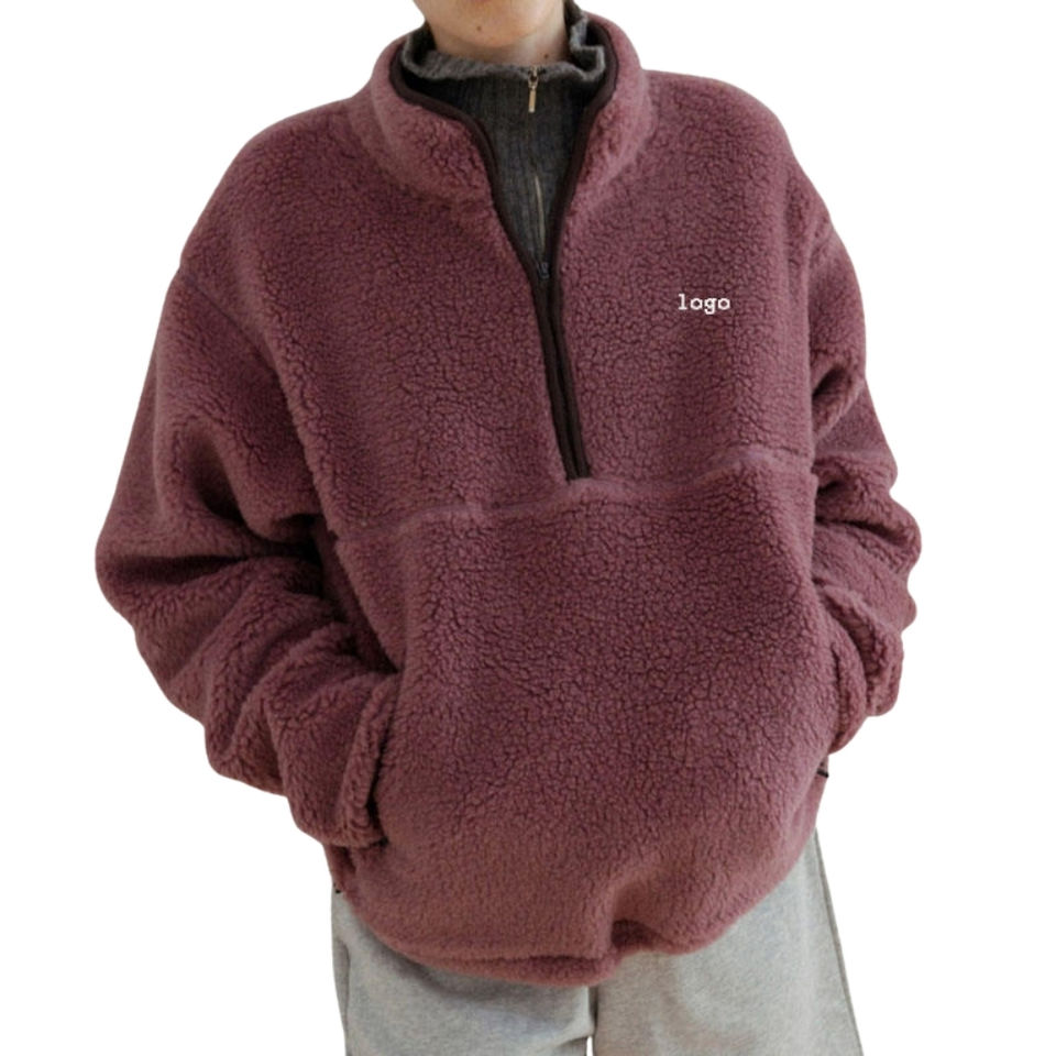 เสื้อฮู้ดผ้าฟลีซคอตั้งแบบกำหนดเองสำหรับฤดูหนาว ผ้าพรีเมียม อุ่น นุ่ม สวมใส่สบาย สไตล์ลำลอง สตรีทแวร์