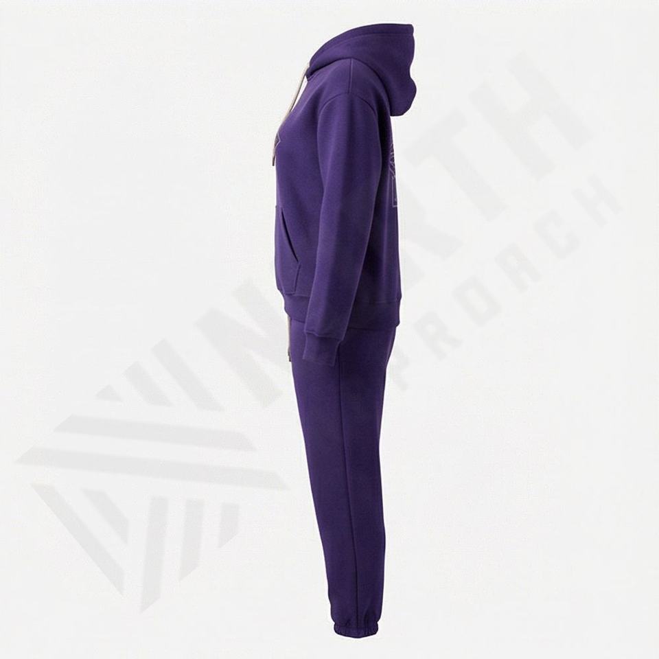 ชุดเซ็ทลำลองแบบมีฮู้ดสำหรับฤดูหนาว พิมพ์ลายสกรีน ผ้าฝ้ายฟลีซ 100% สำหรับผู้หญิง