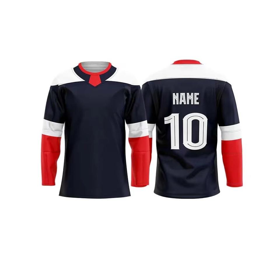 ชุดแข่งฮอกกี้แบบกำหนดเองสำหรับฤดูหนาว ชุดเปล่าแบบพิมพ์ลายสองด้าน เสื้อฮอกกี้สำหรับฝึกซ้อม ระบายเหงื่อได้ดี คอวี แขนยาว