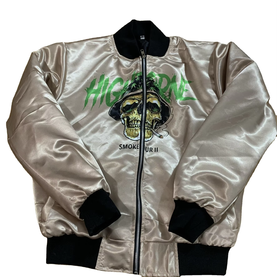 แจ็คเก็ตผ้าซาตินสำหรับผู้ชายแจ็คเก็ตบอมเบอร์พิมพ์ลายสกรีนและปักด้วยอักษรสำหรับฤดูหนาวตามสั่ง