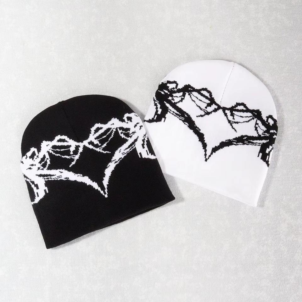 หมวกไหมพรมลายหัวกะโหลกสำหรับผู้ใหญ่หมวกบีนนี่ถักลายยิ้มเรียบสำหรับฤดูหนาวออกแบบได้ตามต้องการ