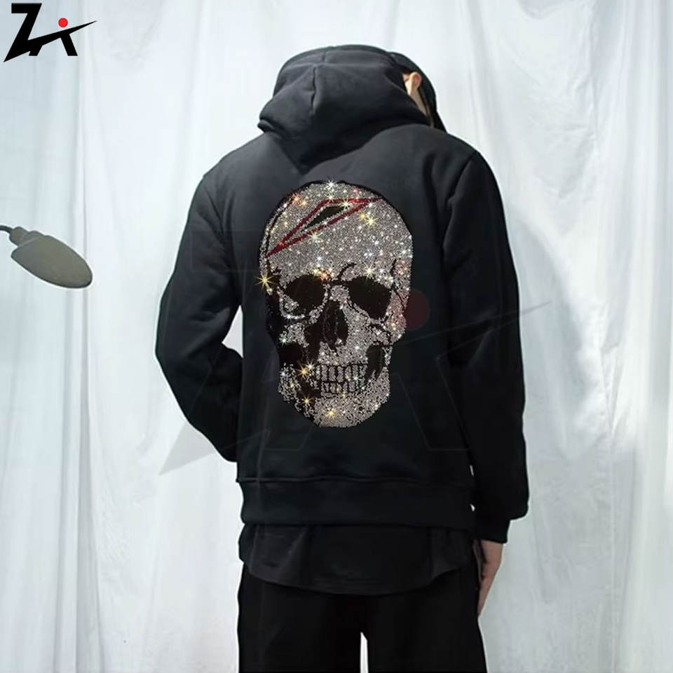 เสื้อฮู้ดดี้ผู้ชายแขนยาวลายหัวกะโหลก ไซส์ใหญ่ ปักลาย 3 มิติ ประดับเพชร ดีไซน์หนา ผ้าฝ้ายหนาพิเศษ ทรงโอเวอร์ไซส์ สำหรับฤดูหนาว