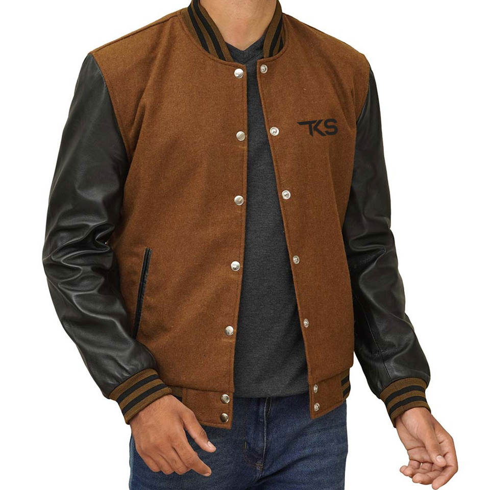ชื่อผลิตภัณฑ์:แจ็คเก็ตทีมโรงเรียนแขนหนังผู้ชาย