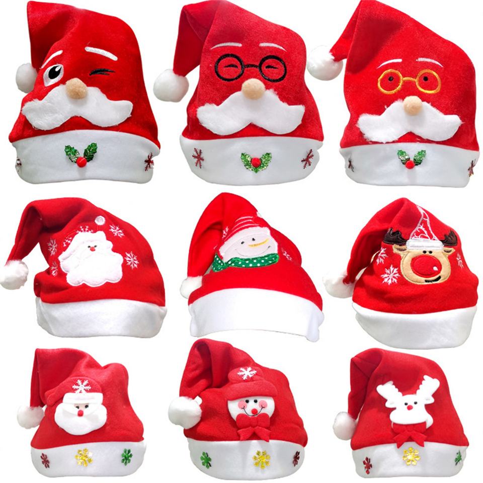 หมวกคริสต์มาสลายการ์ตูนซานตาคลอสสีแดงสำหรับฤดูหนาว พร้อมไฟกระพริบ สำหรับผู้ใหญ่และเด็ก