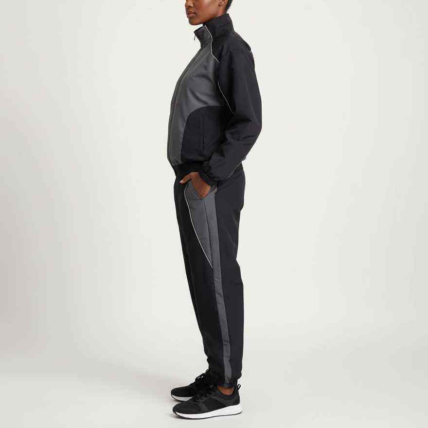ชุดวอร์มออกกำลังกายผู้หญิงแบบ 2 ชิ้น ผ้าสแปนเด็กซ์และโพลีเอสเตอร์กันน้ำ กันลม ซิปปักลายเพชร รับผลิตตามแบบ OEM
