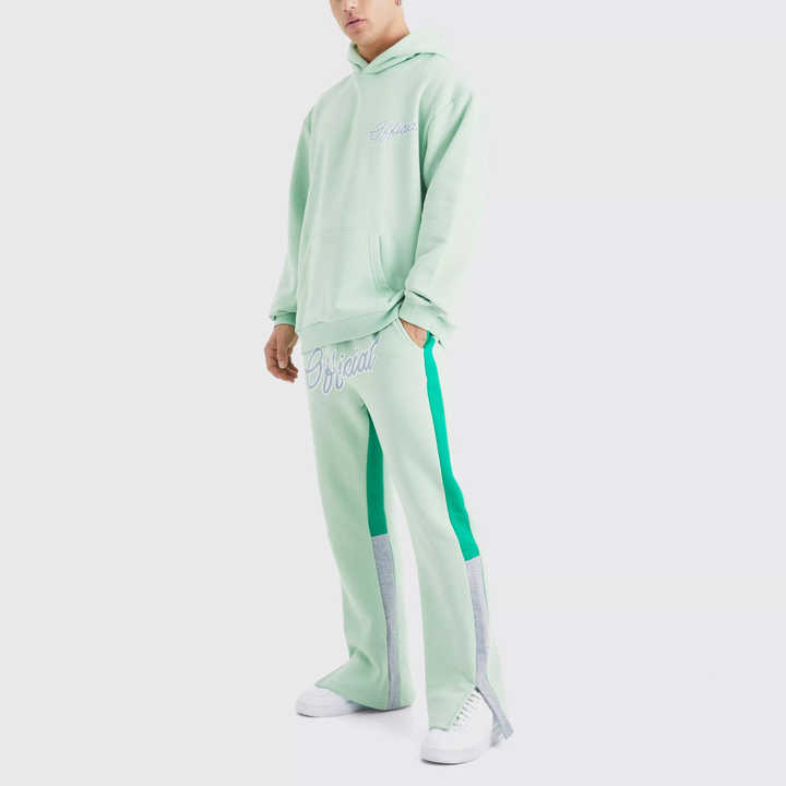 ชุดวอร์มแฟชั่นฤดูหนาวแบบมีลายปักสไตล์ดิสเทรสสำหรับผู้ชาย ทรงขาบาน กระชับพอดีตัว ผลิตจากโพลีเอสเตอร์/คอตตอน กันลม ระบายอากาศได้ดี