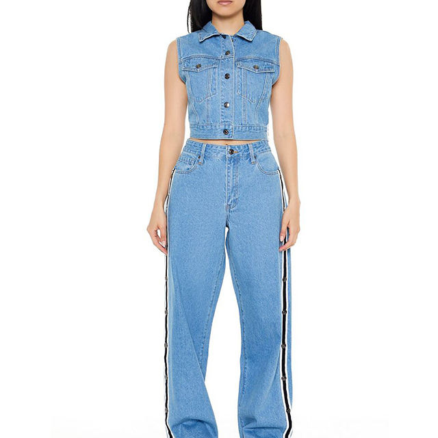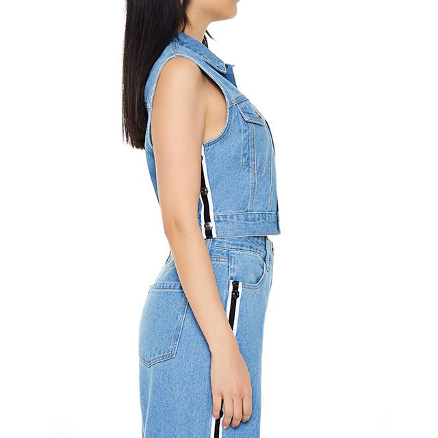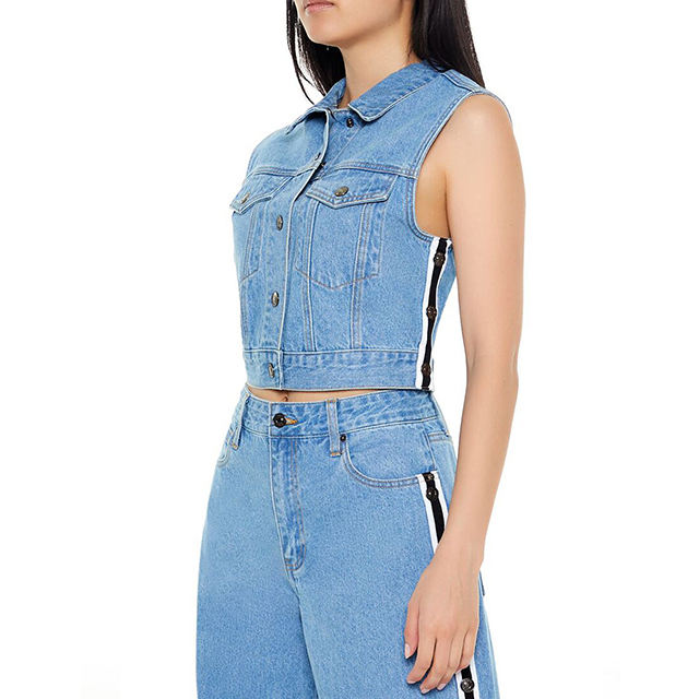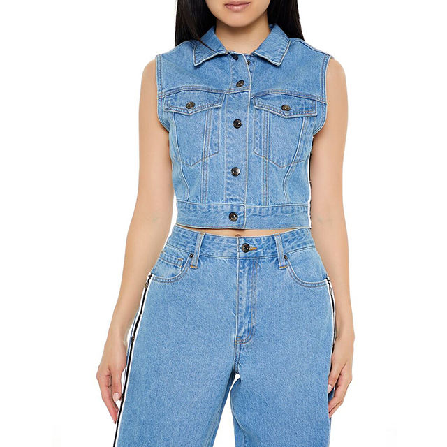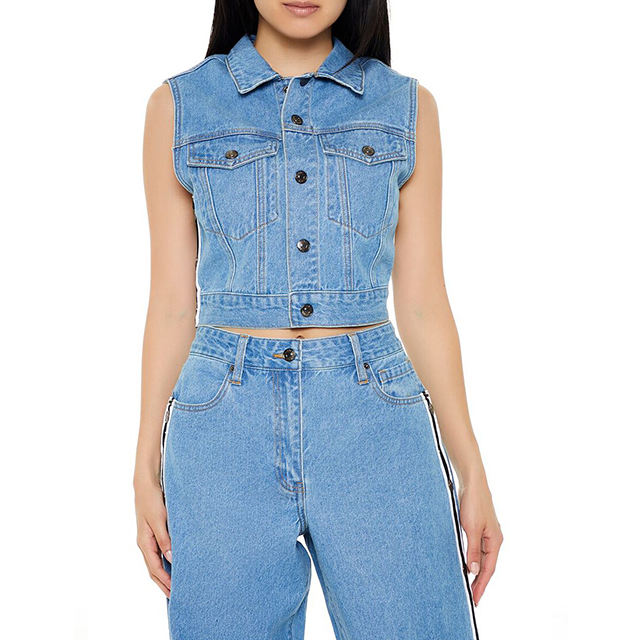 เสื้อแจ็คเก็ตแขนกุดผู้หญิงผ้าฝ้าย 100% ยืดได้ หลายกระเป๋า ลายวินเทอร์ดีไซน์แบบแอซิดวอช