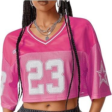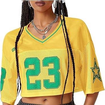 เสื้อยืดครอปทรงโอเวอร์ไซส์สไตล์วินเทจแนวสตรีทแวร์สปอร์ตเรโทรอเมริกันทรงบ็อกซี่ผ้าตาข่ายสำหรับฤดูร้อน เหมาะสำหรับเล่นฟุตบอลอเมริกัน