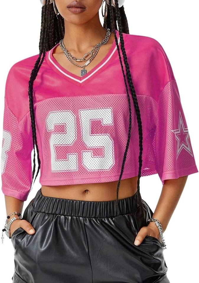 เสื้อเจอร์ซีย์แฟนอเมริกันฟุตบอลผู้หญิงแบบสั่งทำพิเศษ ผ้าโพลีเอสเตอร์ตาข่าย 100% เสื้อกีฬาซับลิเมชั่น น้ำหนักเบา ระบายอากาศได้ดี คอวี แห้งเร็ว