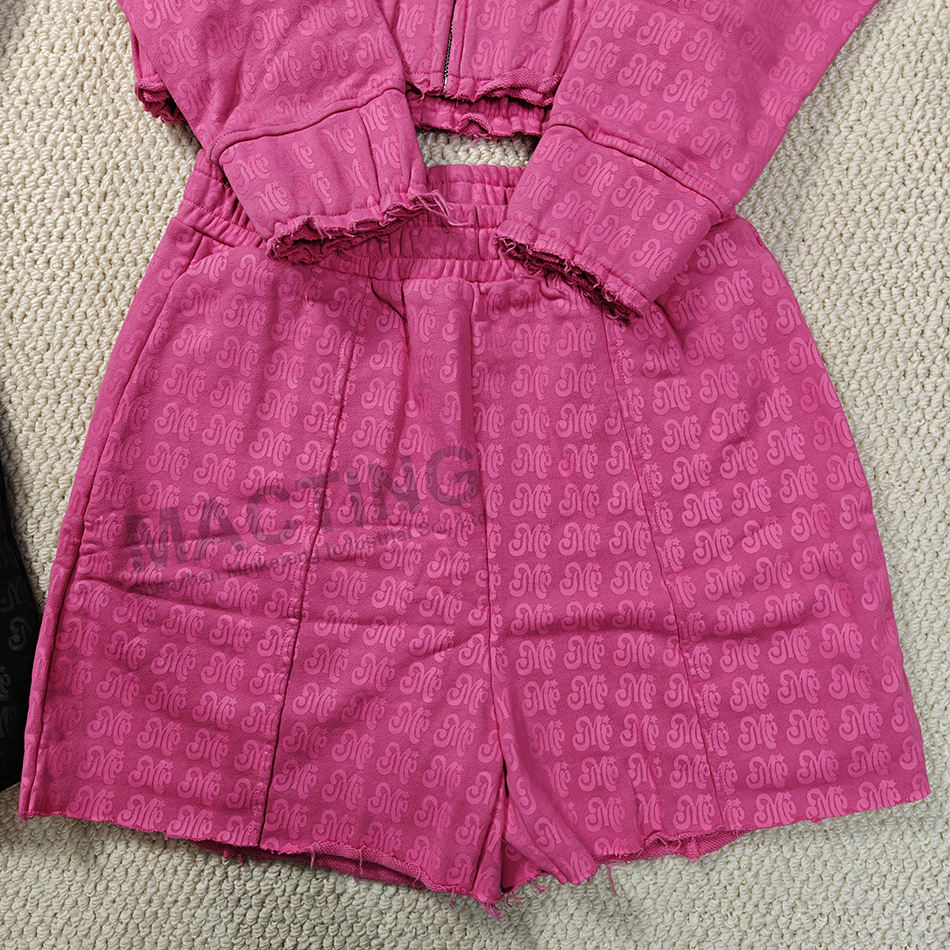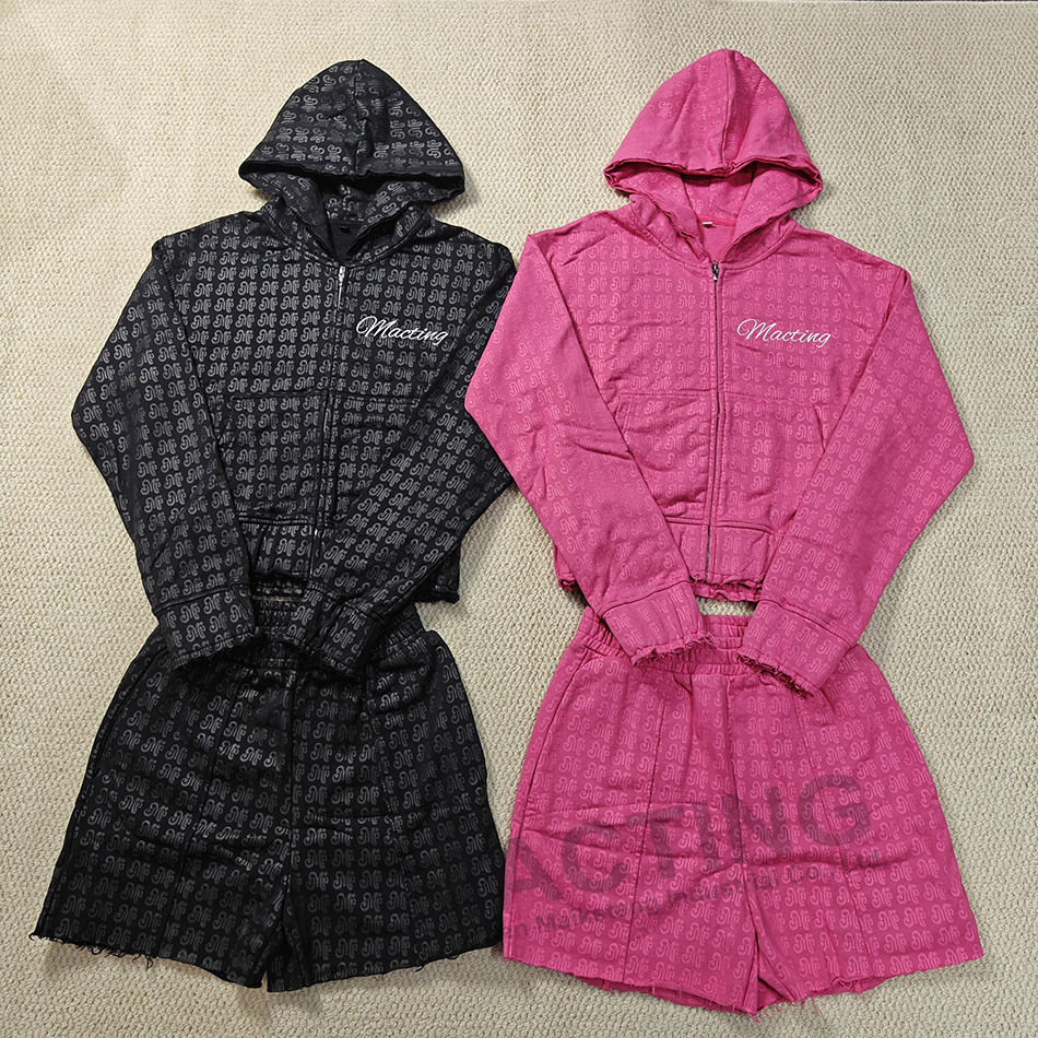 Custom Women 2 Piece Set Distressed Cropped Hoodie and Shorts Set All Print Logo Two Piece Sweatsuit Set