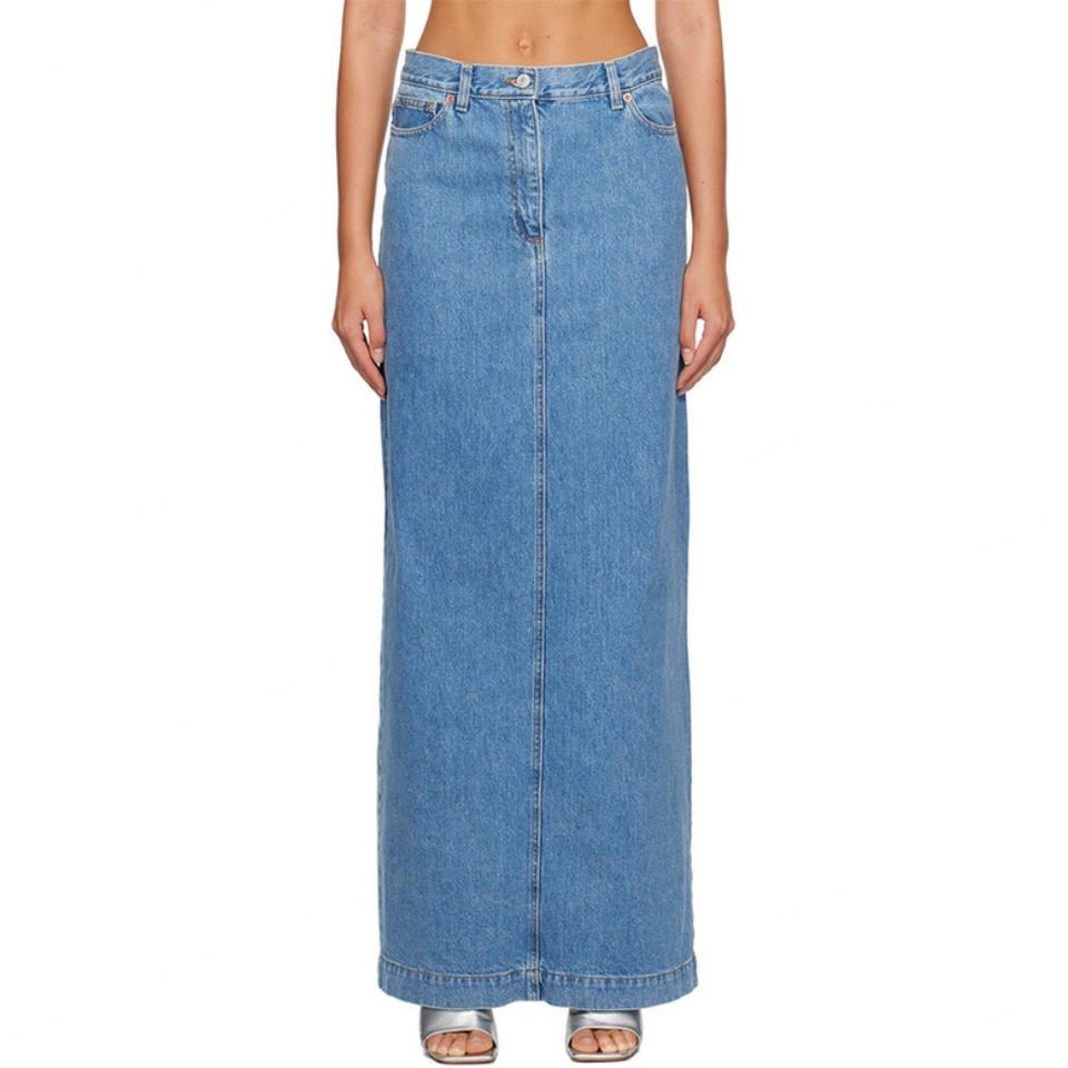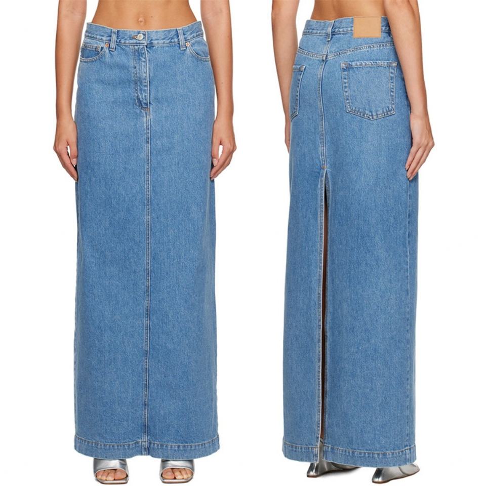 กระโปรงยีนส์ยาวทรงแม็กซี่สีน้ำเงินสำหรับผู้หญิง ผ้าฝ้าย 100% ติดซิป