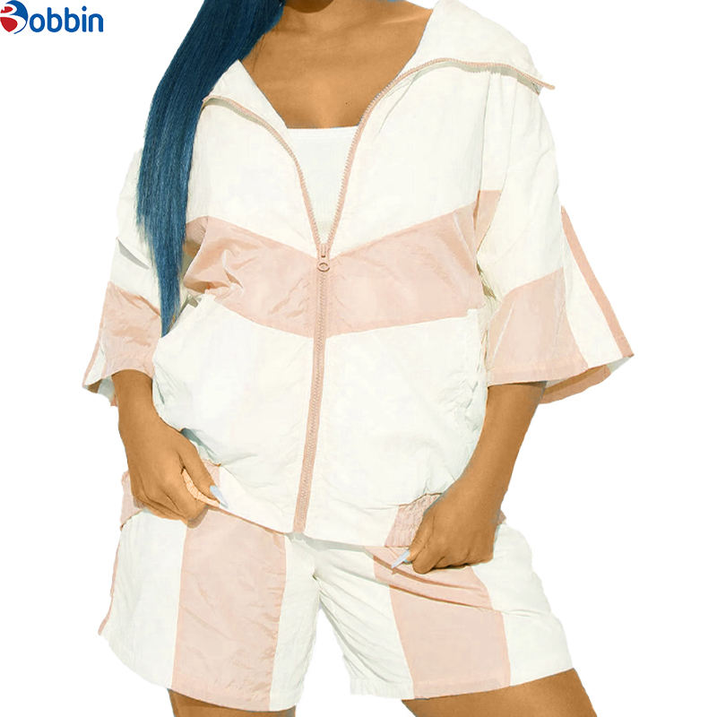 ชื่อสินค้า:ชุดเซ็ตเสื้อกันลมและกางเกงขาสั้นสำหรับผู้หญิง