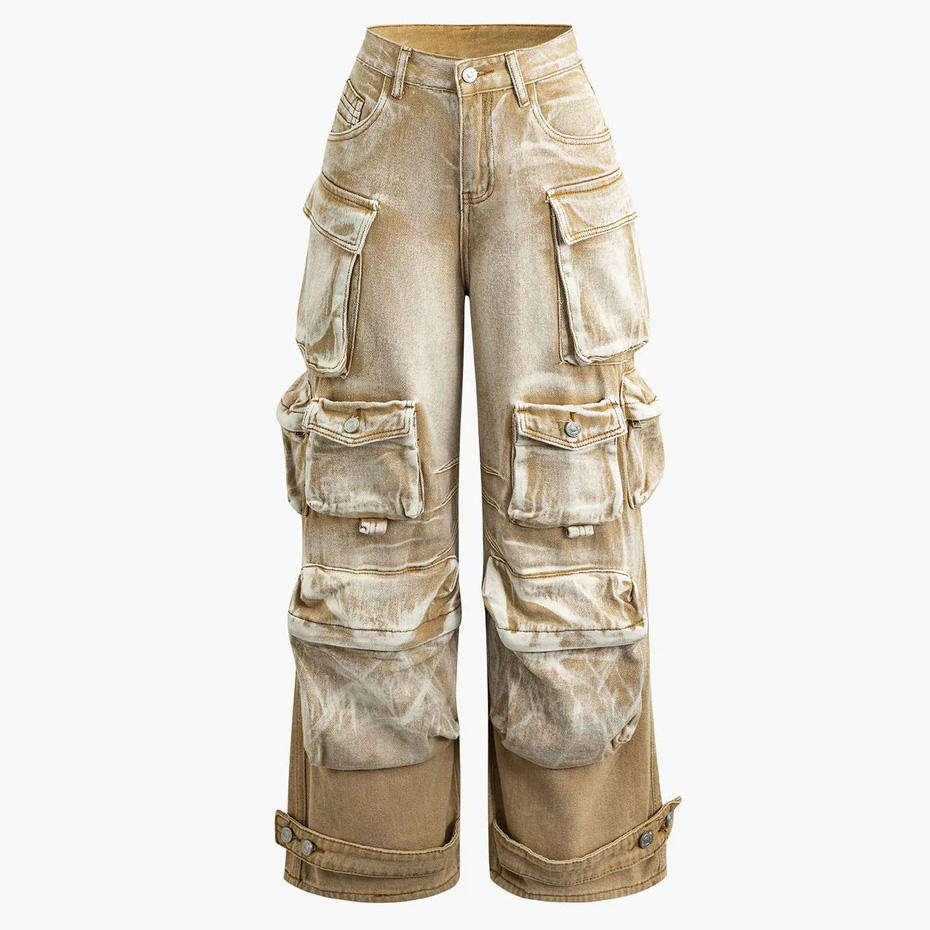 Keywords:Custom Women Cargo Denim Jeans Acid Wash Vintage Fashion Pants