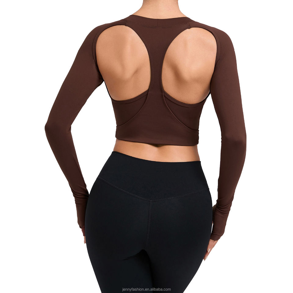 เสื้อยืดแขนยาวสำหรับผู้หญิงเสื้อยืดวิ่งรุ่นพื้นฐานสวมใส่สบายยืดได้ตามต้องการ