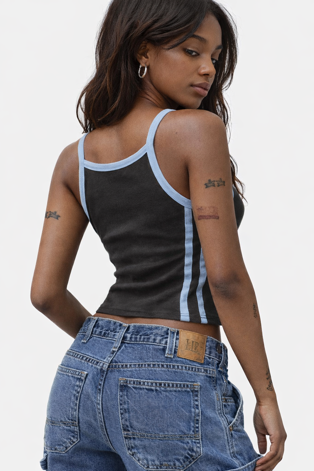 Custom Women Sporty Breathable Summer Crop Tank Top Ribbed Contrast Trim Slim Fit Print Strapless Cami Custom Logo