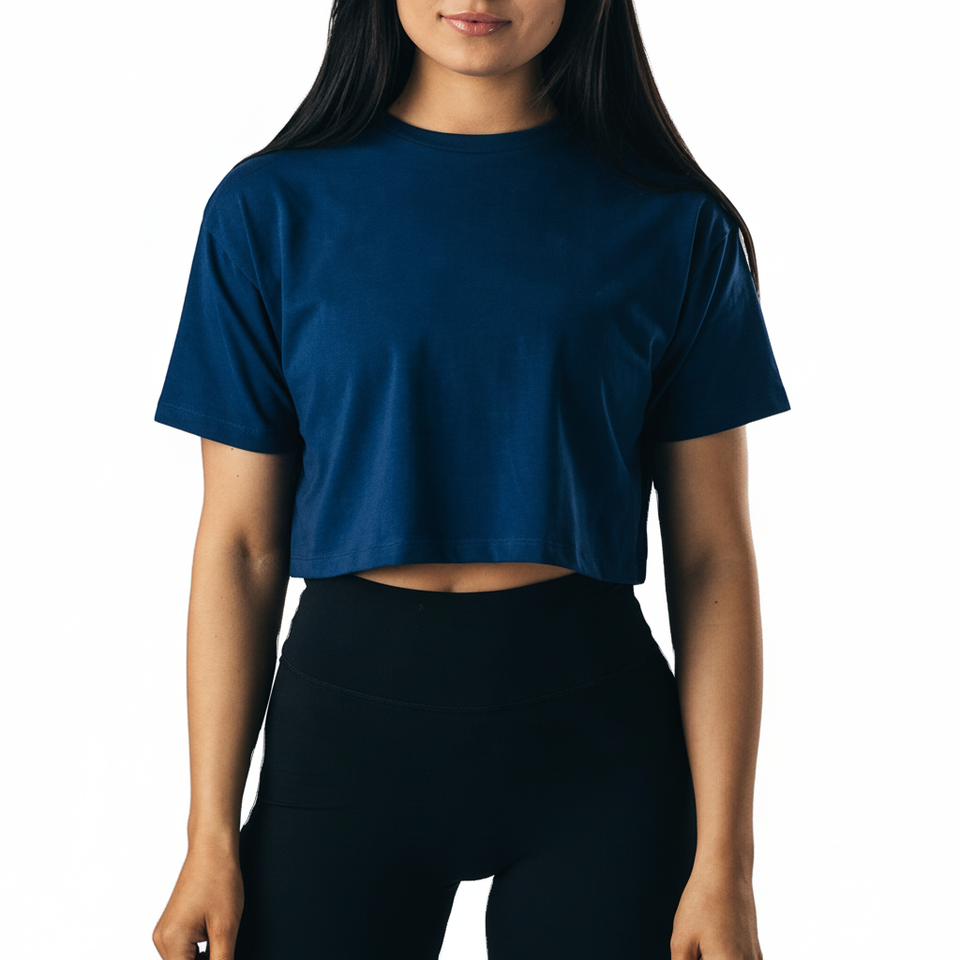 เสื้อครอปท็อปผู้หญิงแบบเรียบง่าย เสื้อยืดเปล่าสำหรับฤดูร้อน เสื้อยืดกีฬา พิมพ์ลายพัฟฟ์ ผ้าฝ้าย 100%