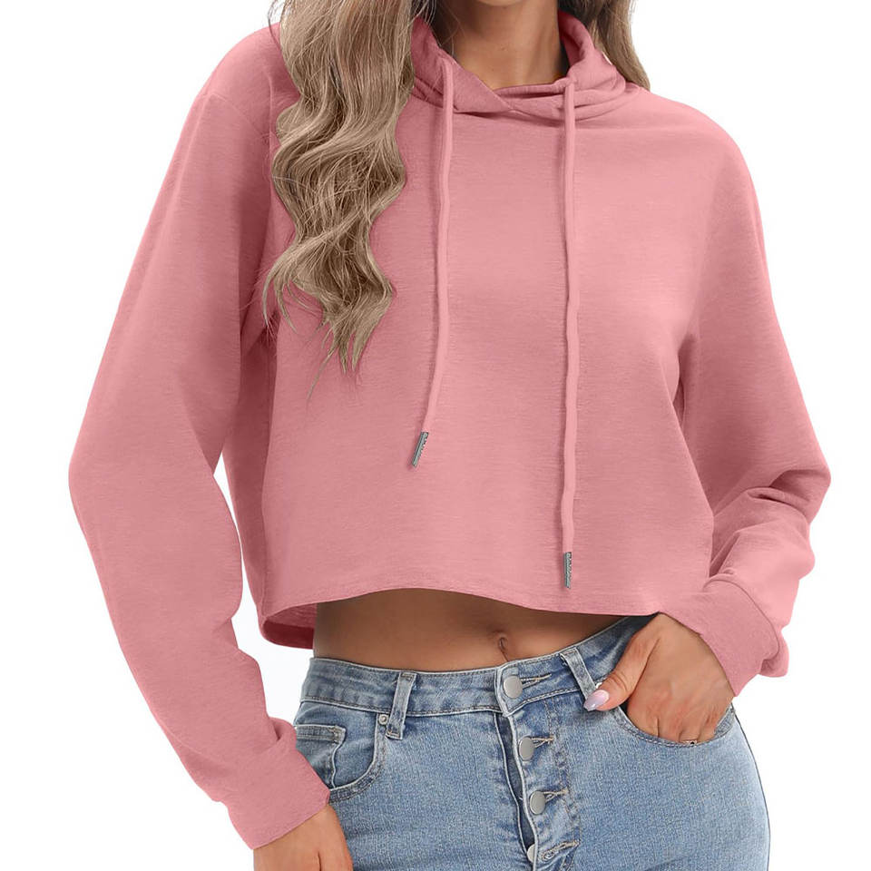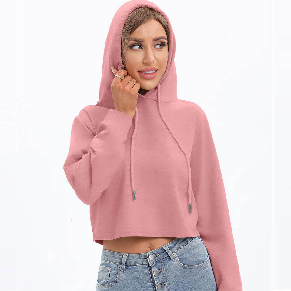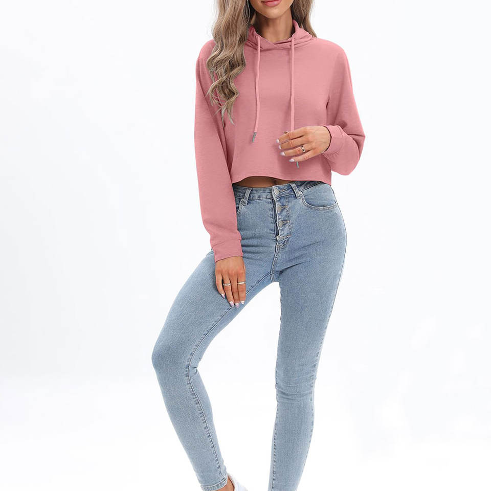 เสื้อฮู้ดกันหนาวแบบสวมศีรษะสำหรับผู้หญิงเสื้อครอปแบบลำลอง