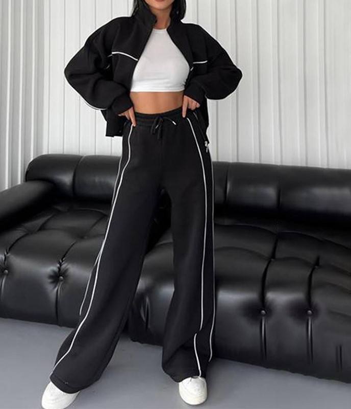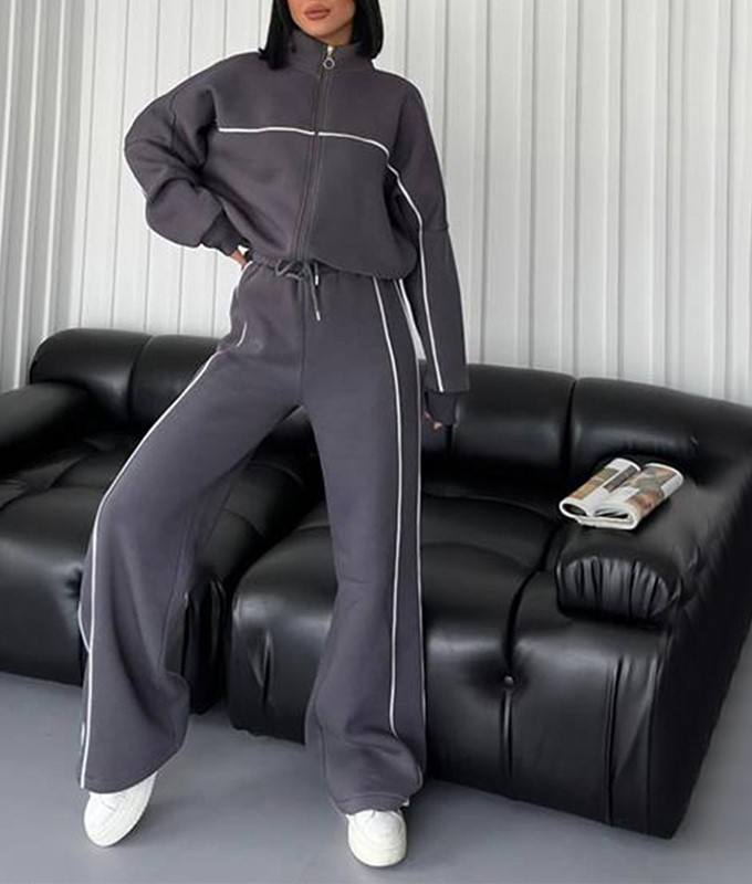 ชุดวอร์มสองชิ้นพร้อมแถบคาดสำหรับผู้หญิงเสื้อสเวตเชิ้ตแบบมีซิปตัด