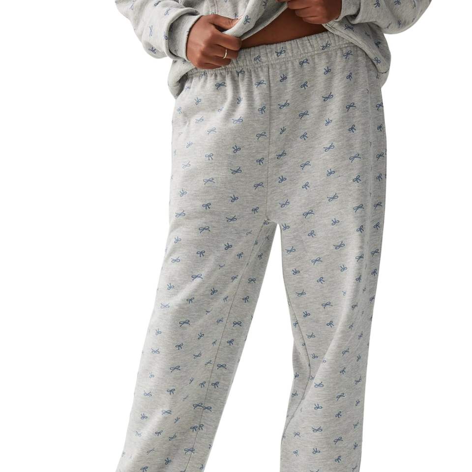 กางเกงวอร์มพิมพ์ลายสีเทาสำหรับผู้หญิง เอวยางยืด สวมใส่สบาย ผลิตจากผ้าฝ้าย รับผลิตตามแบบ พร้อมสกรีนโลโก้ ขายส่ง OEM