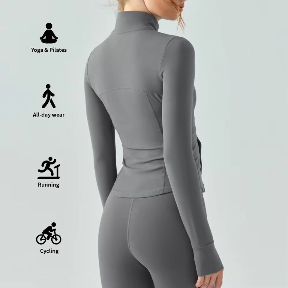 ชุดออกกำลังกายผู้หญิง 3 ชิ้น แขนยาว ผ้ารัดรูป แห้งเร็ว สำหรับโยคะและกีฬา เอวสูง