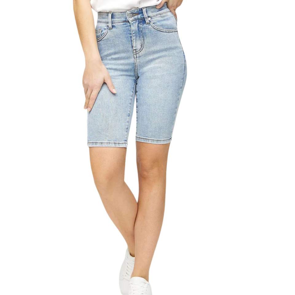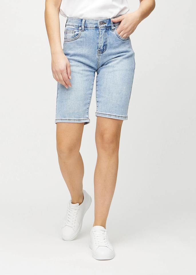 กางเกงยีนส์ขาสั้นเอวสูงทรงสลิมฟิตสำหรับผู้หญิง ความยาวระดับเข่า ผ้าเดนิมยืด สไตล์ลำลอง แฟชั่นฤดูร้อน รับผลิตตามแบบ (OEM) ขายส่ง