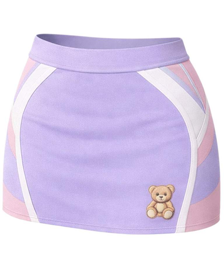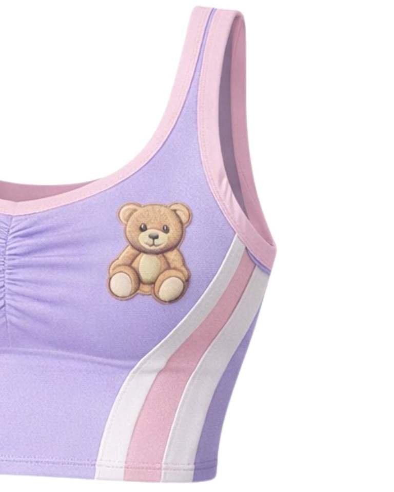ชุดเซ็ตทูพีซสำหรับผู้หญิง ลายพิมพ์เท็ดดี้ สีม่วงลาเวนเดอร์ เสื้อครอปแขนกุด คอกว้าง กระโปรงมินิเอวสูง ทรงเข้ารูป เหมาะสำหรับใส่ในฤดูร้อน