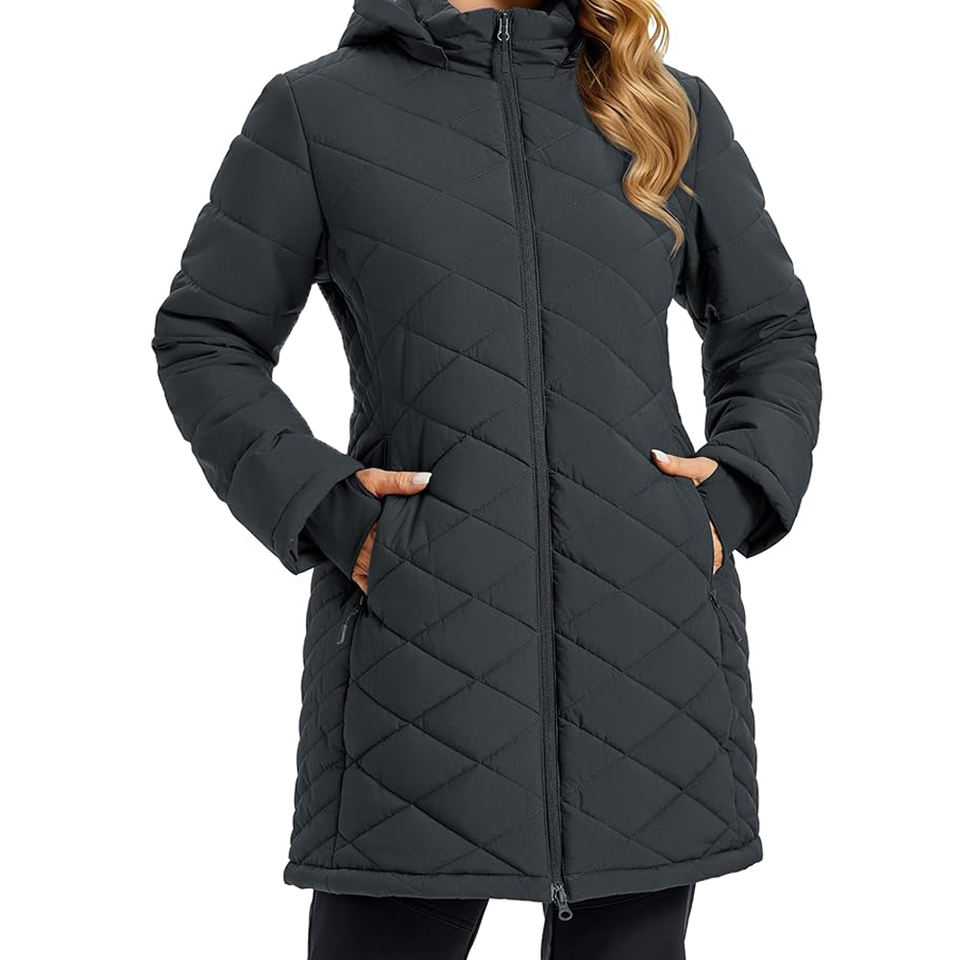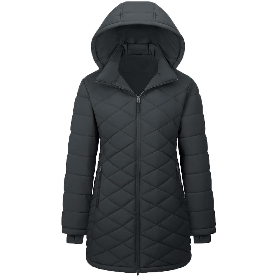 เสื้อโค้ทพัฟเฟอร์ผู้หญิงแบบยาว บุหนา แบบหนาพิเศษ บุใยสังเคราะห์ สำหรับฤดูหนาว แบบมีซิป ฮู้ดถอดออกได้