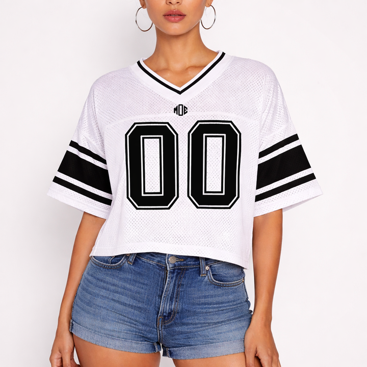 เสื้อฟุตบอลอเมริกันแบบตาข่ายสำหรับผู้หญิง สั่งทำได้ตามต้องการ ทรงครอป ระบายอากาศได้ดี ผลิตจากโพลีเอสเตอร์ ชุดยูนิฟอร์มทีมแบบสั่งทำ รับผลิตจำนวนมากแบบ OEM