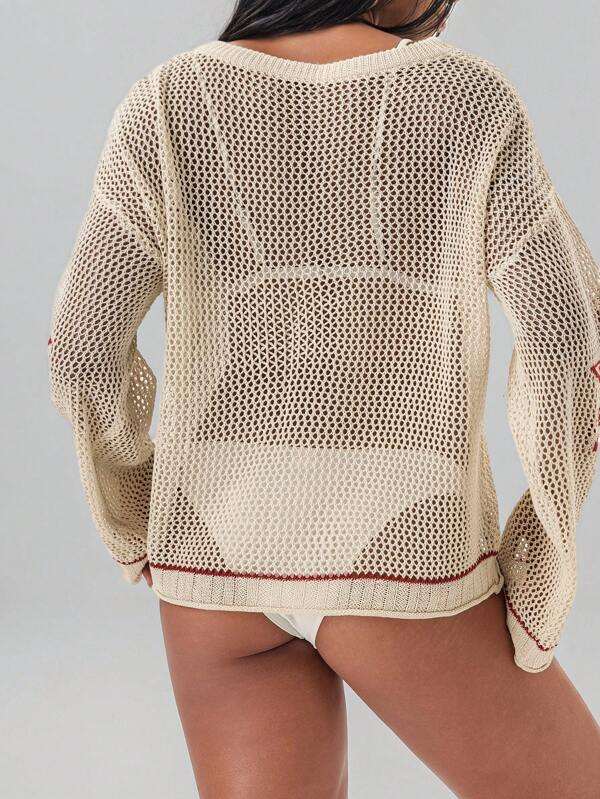 เสื้อสเวตเตอร์ถักตาข่ายโอเวอร์ไซส์สำหรับผู้หญิง ดีไซน์ตัวเลข ระบายอากาศได้ดี แขนยาว แฟชั่น รับผลิตตามแบบ (OEM) ขายส่ง