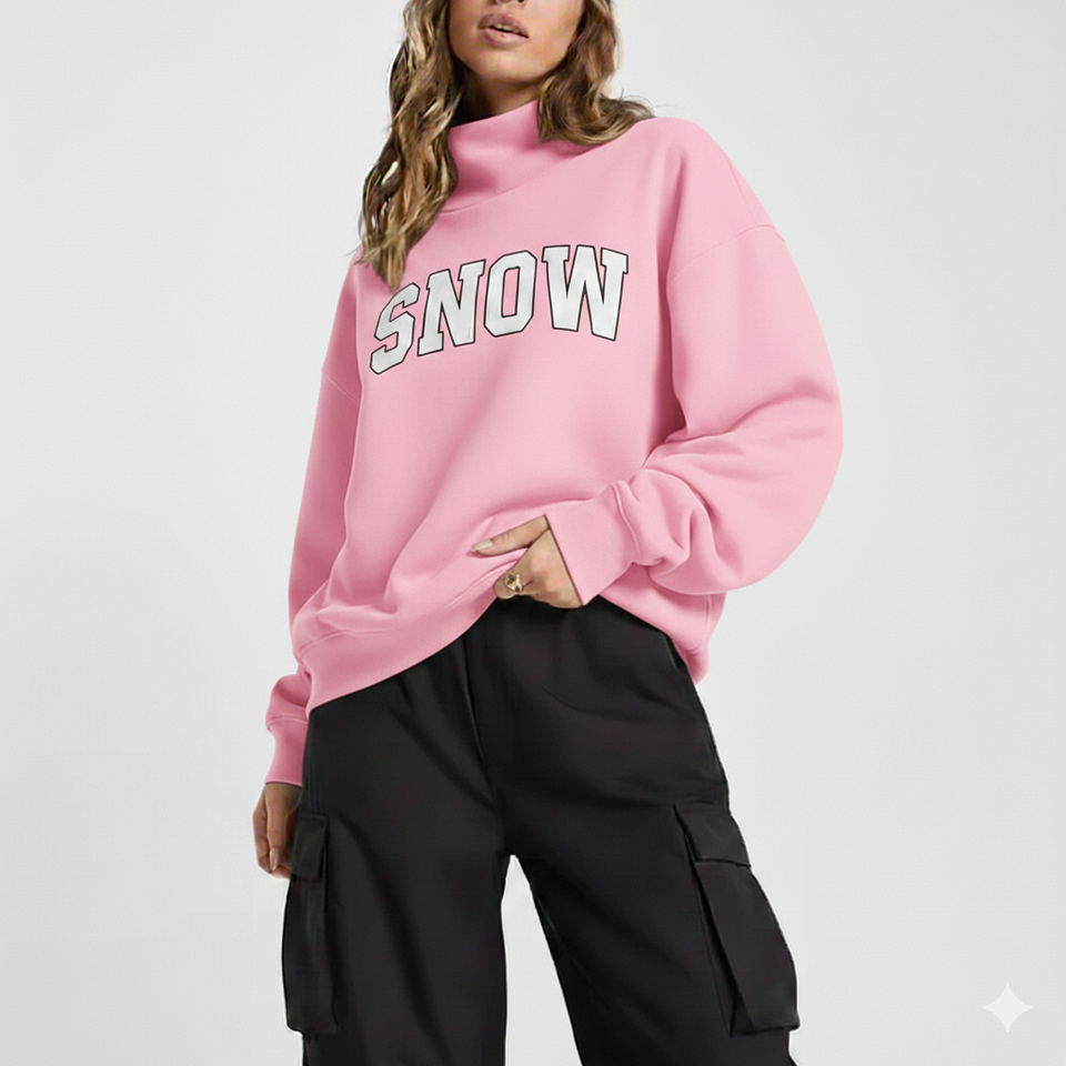 เสื้อสเวตเชิ้ตคอเต่าทรงโอเวอร์ไซส์สำหรับผู้หญิง ผ้าถักหนานุ่มสำหรับฤดูหนาว ปี 2026 ผ้าโพลีเอสเตอร์ผสมคอตตอนคุณภาพดี ทันสมัย สวมใส่สบาย