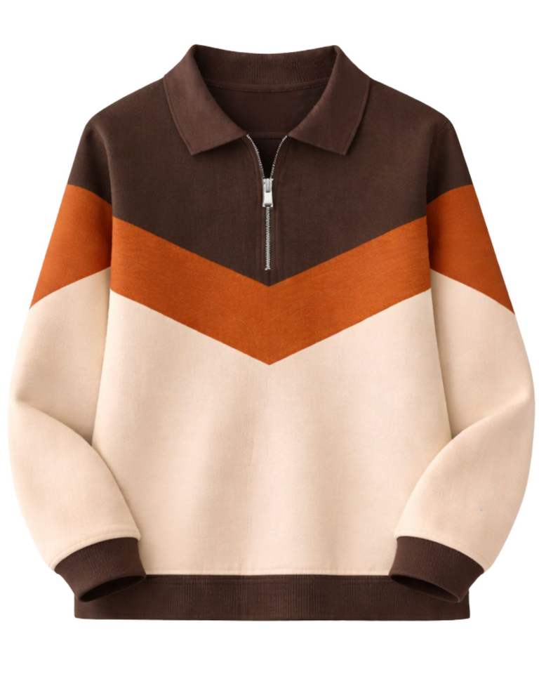 เสื้อสเวตเชิ้ตผู้หญิงแบบคอซิป ¼ ซิป สีน้ำตาล ส้ม เบจ ตัดต่อสี ผ้าฟลีซ ทรงหลวม สวมใส่สบาย อุ่นเหมาะสำหรับฤดูหนาว เนื้อผ้านุ่ม