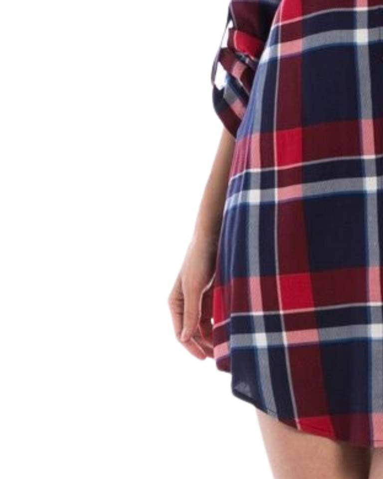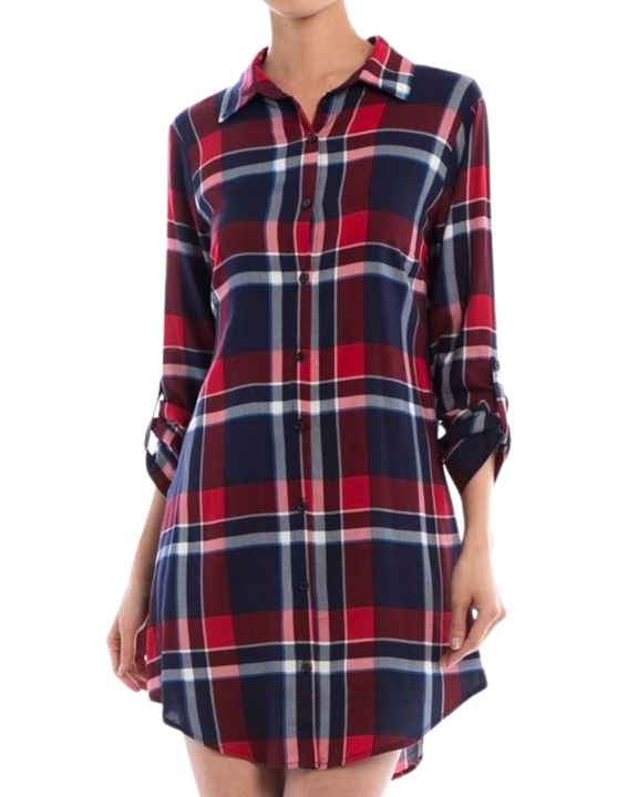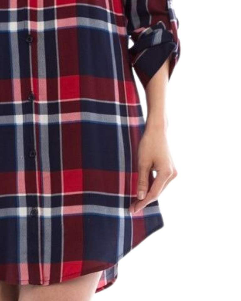 เดรสเชิ้ตผู้หญิงลายสก็อตสีแดงกรมท่า แขนยาว ติดกระดุม ทรงหลวม สไตล์ลำลอง เหมาะสำหรับฤดูใบไม้ร่วงและฤดูหนาว