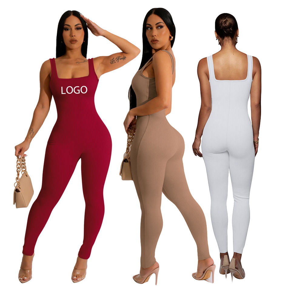 จั๊มสูทเสื้อกั๊กแขนกุดเปิดหลังคอสี่เหลี่ยม