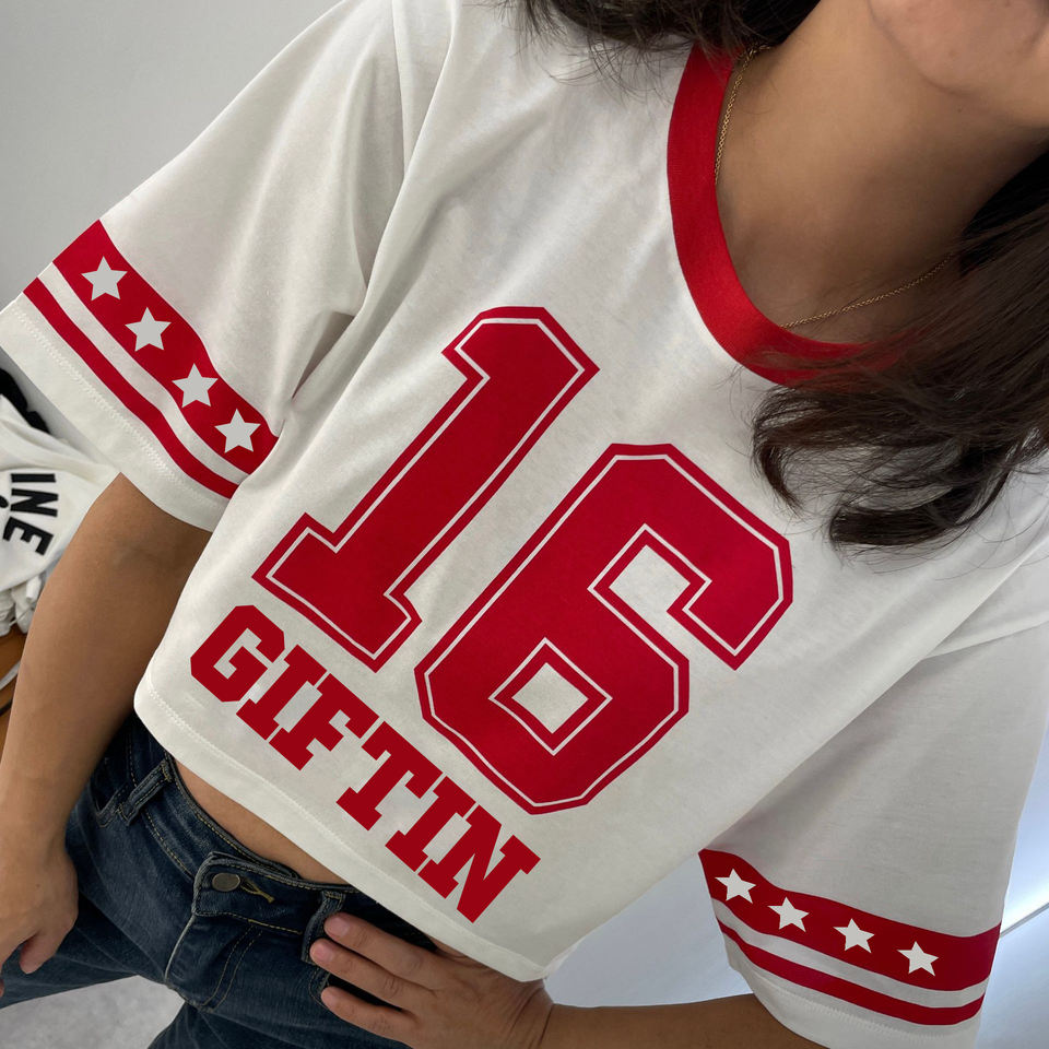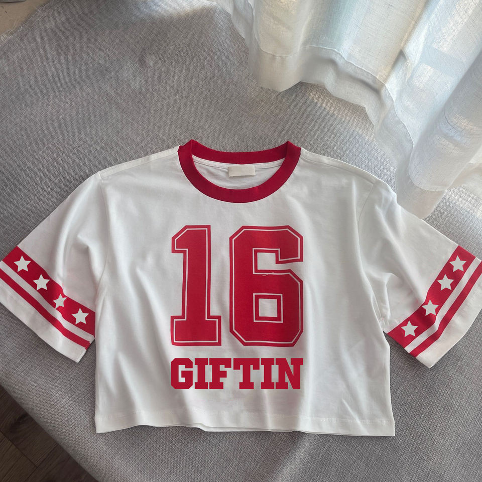 Words1กุญแจ:เสื้อยืดบ็อกซี่เอวลอยสำหรับผู้หญิง