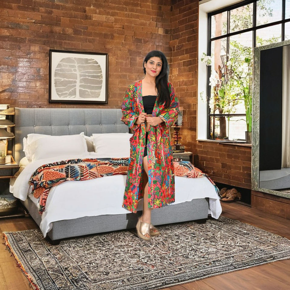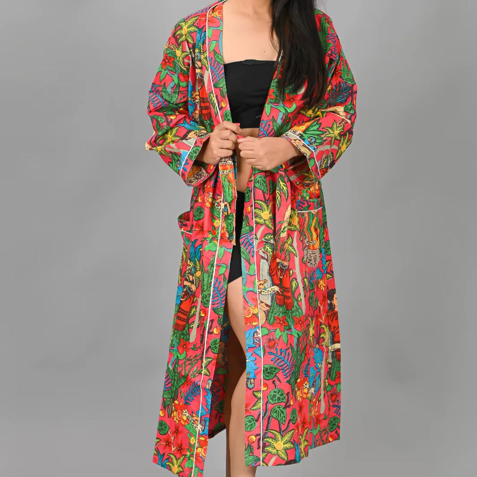 ชุดคลุมอาบน้ำผู้หญิงแบบเซ็กซี่สำหรับฤดูร้อน ผ้าฝ้าย ชุดนอนยาว ชุดคลุมเจ้าสาว ชุดนอนกิโมโน แห้งเร็ว เนื้อผ้านุ่ม