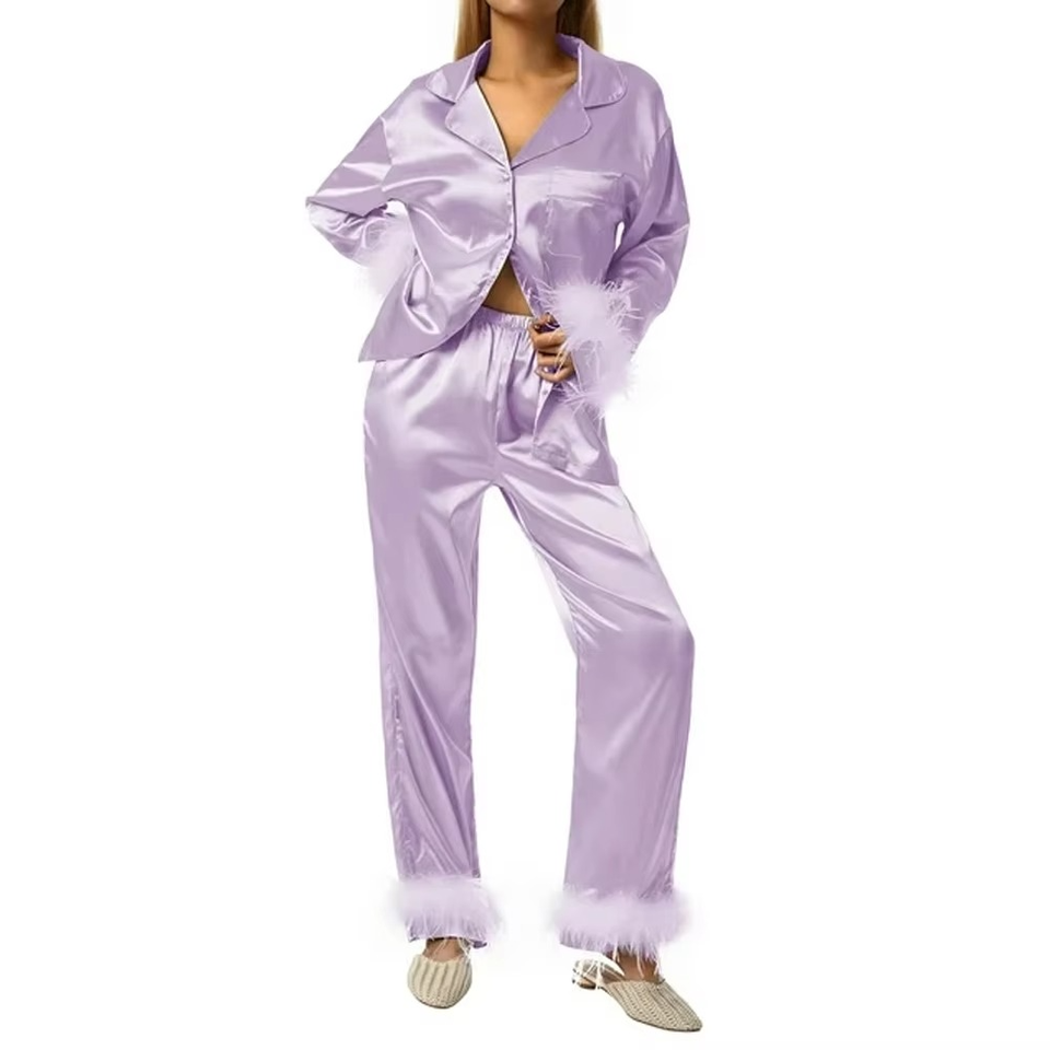 ชุดนอนผ้าไหมซาตินระบายอากาศสำหรับผู้หญิงชุด2ชิ้นชุดนอนผู้หญิงคุณภาพสูงกำหนดเอง
