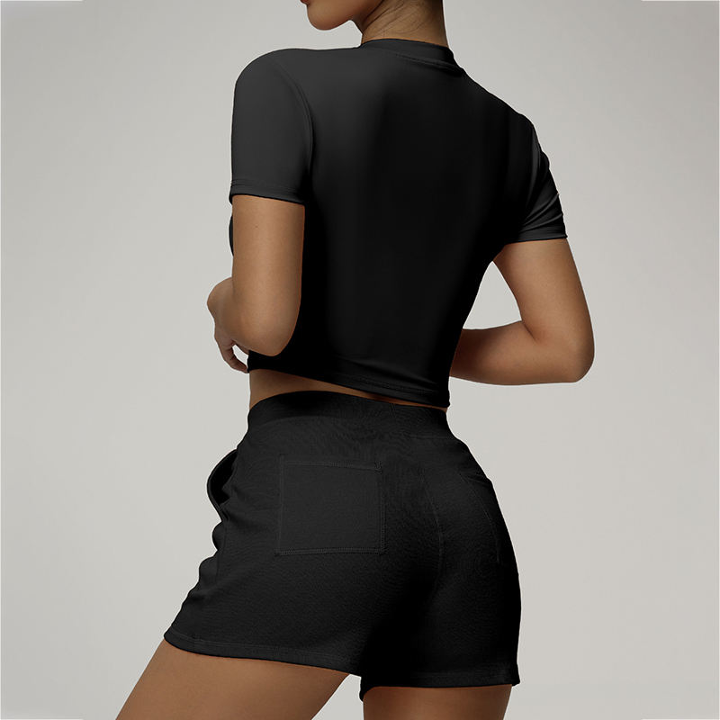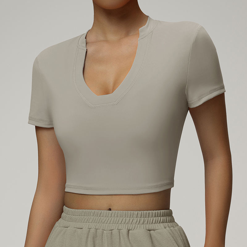 เสื้อยืดผู้หญิงแบบสวมใส่สบาย ผ้าเนื้อนุ่มแนบเนื้อ คอวี แขนสั้น สำหรับออกกำลังกาย ฟิตเนส โยคะ และยิม