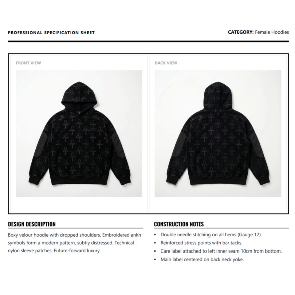 เทคนิค:ปัก, พิมพ์ลาย, ล้าง, เส้นด้ายย้อม, เสื้อผ้าย้อม, ล้างสารฟอกสี, ปัก3D, แจ็คการ์ด, ล้างกรด, Rhinestone, Applique, Embossed