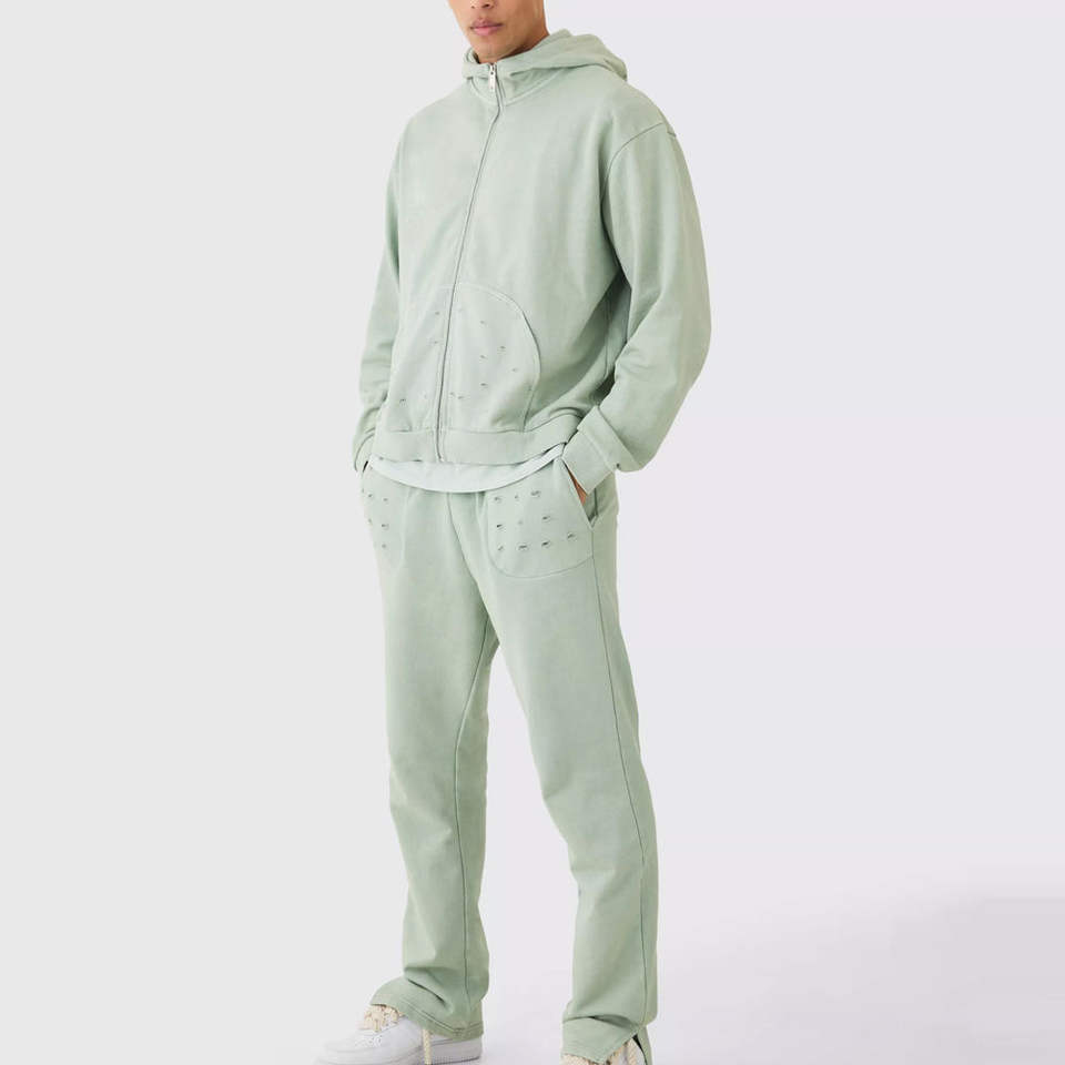 ชุดวอร์มผู้ชายแบบสั่งทำพิเศษ 2 ชิ้น เสื้อคอตั้งทรงสปอร์ต กางเกงขาบาน แฟชั่น ระบายอากาศ แห้งเร็ว น้ำหนักเบา