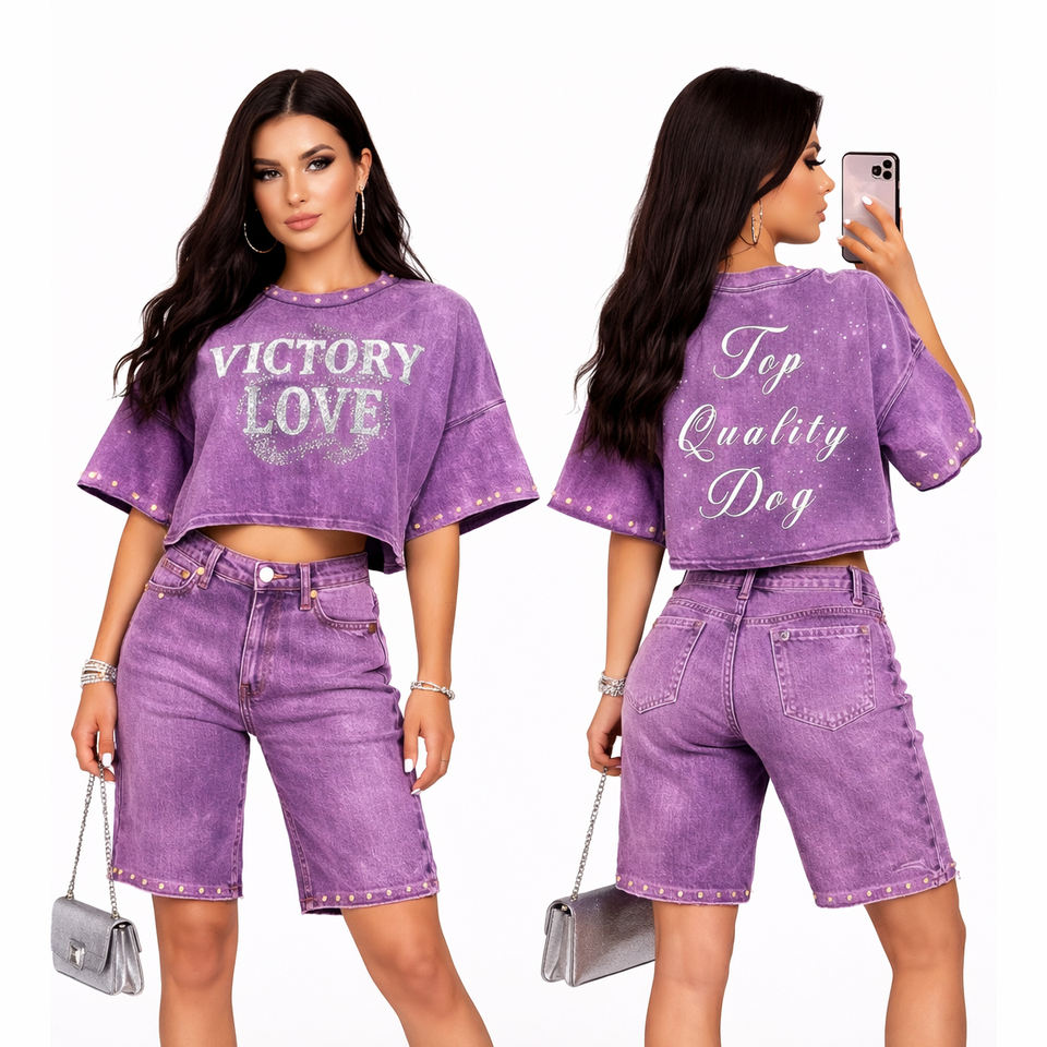 ชุดเซ็ตผู้หญิงสองชิ้น (เสื้อ + กางเกงขาสั้น)