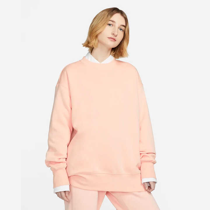 เสื้อสเวตเชิ้ตผู้หญิงแบบสั่งทำพิเศษสำหรับฤดูหนาว ทรงหลวม ผ้าริบ 100% ผ้าฝ้ายฟลีซ ระบายอากาศได้ดี เป็นมิตรกับสิ่งแวดล้อม สีพีชชนาปส์ทั้งตัว