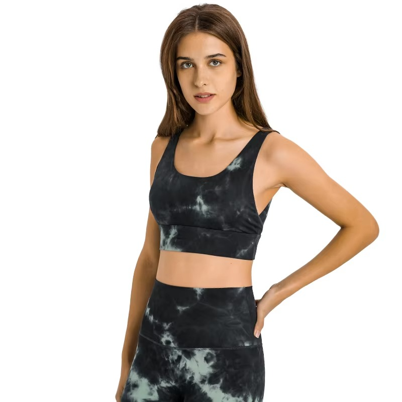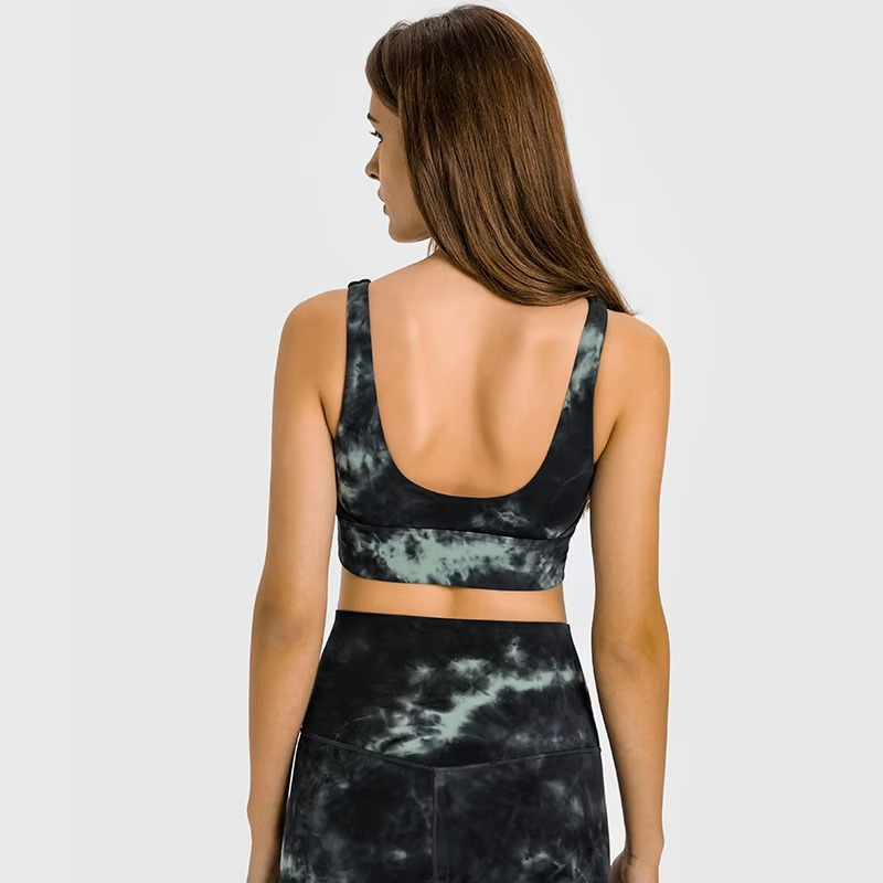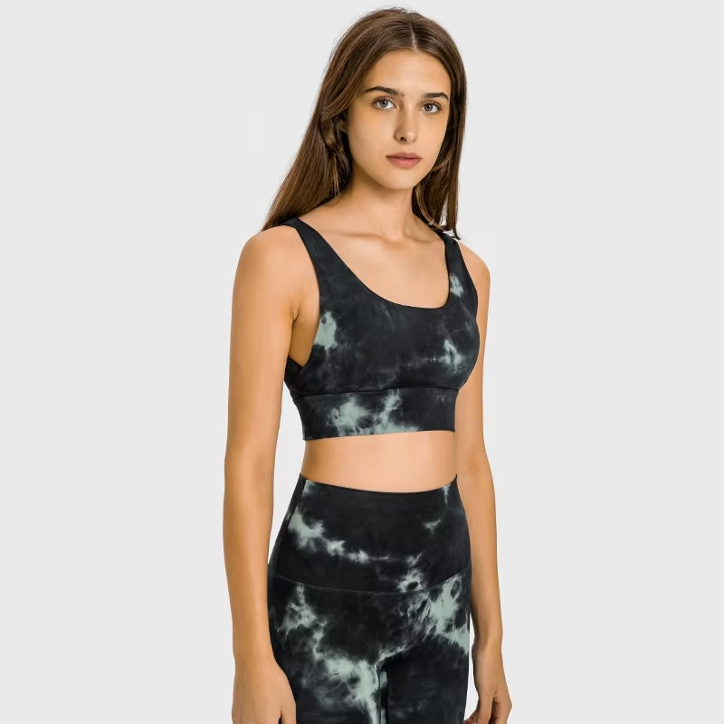 เสื้อชั้นในกีฬาโยคะผู้หญิงแบบไร้ตะเข็บ ลายมัดย้อม ออกแบบเองได้ รับผลิตแบบ OEM ODM สำหรับชุดออกกำลังกาย