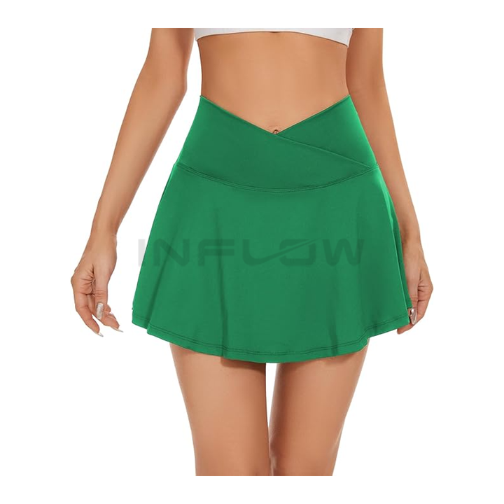 กระโปรงเทนนิสทรงเอไลน์แบบมินิ 2 ชั้นสำหรับผู้หญิง แต่งระบายจีบ แต่งเลื่อม ขาดแต่งแบบมีสไตล์ กระชับรูปร่าง ระบายอากาศได้ดี เงางาม เรียบง่าย