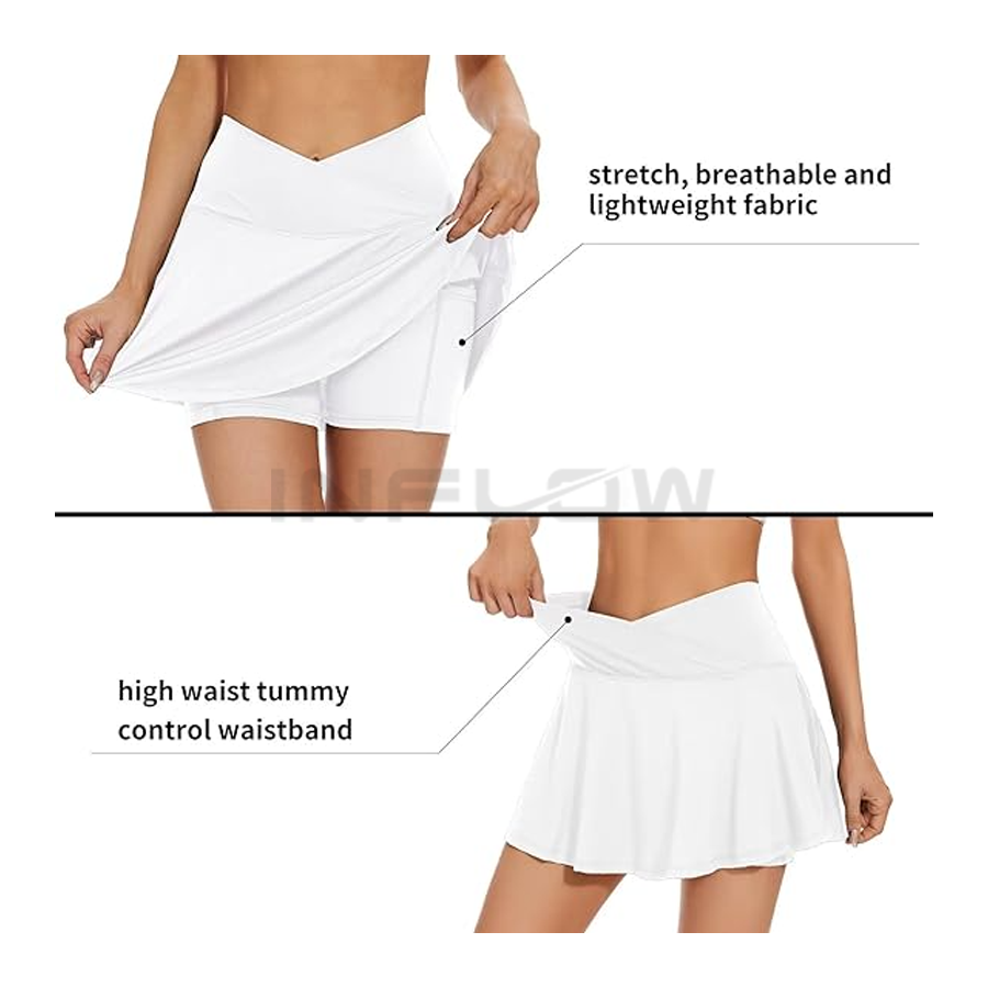 Custom Women's 2-Layer Tennis Mini Skirt Pleated Godet Ripped Sequined Tight Skinny Golf Trunk Breathable Feature Plain Dyed